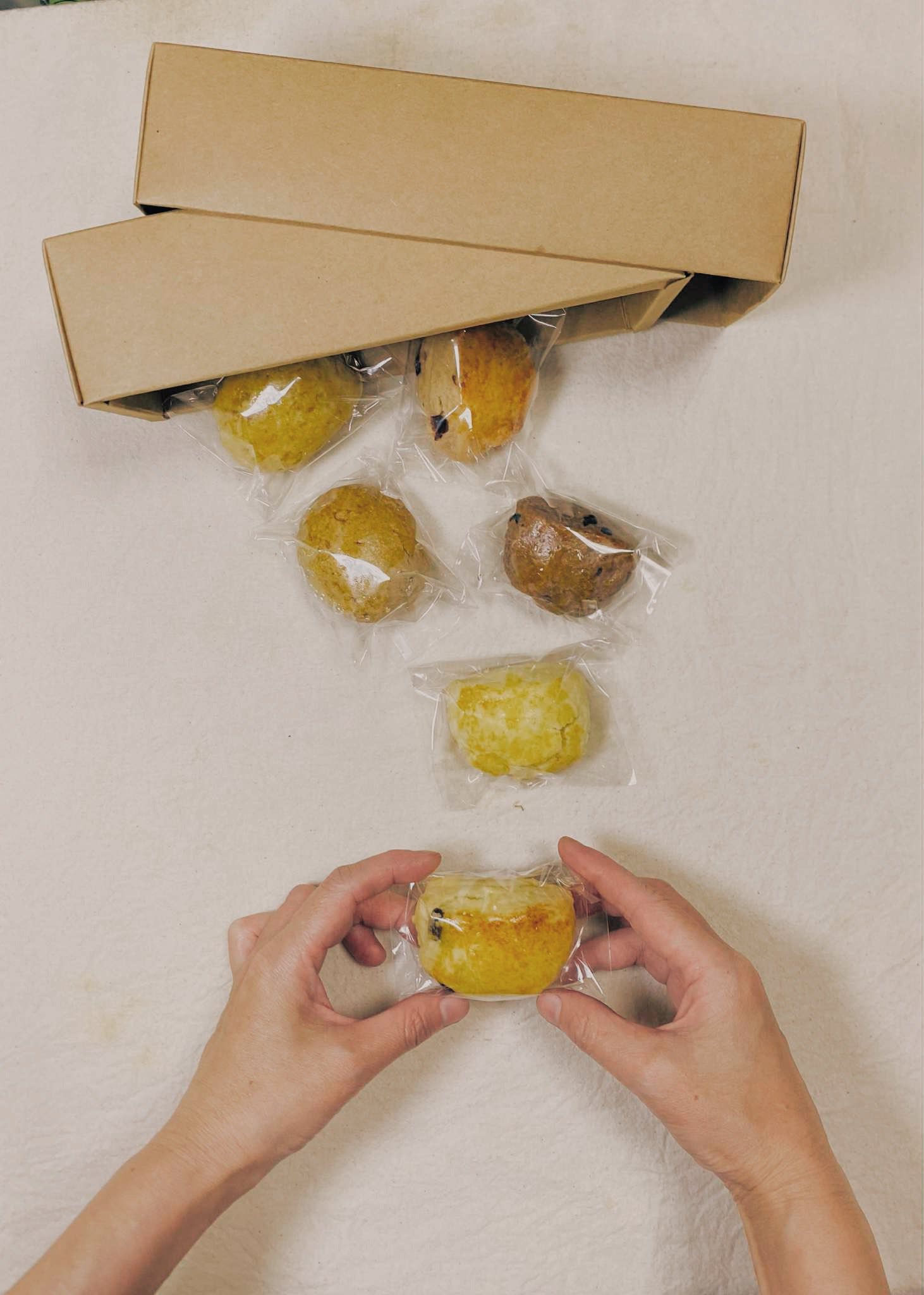 (左下依序) 蘋果肉桂司康 / 法芙娜巧克力司康 / 原味司康